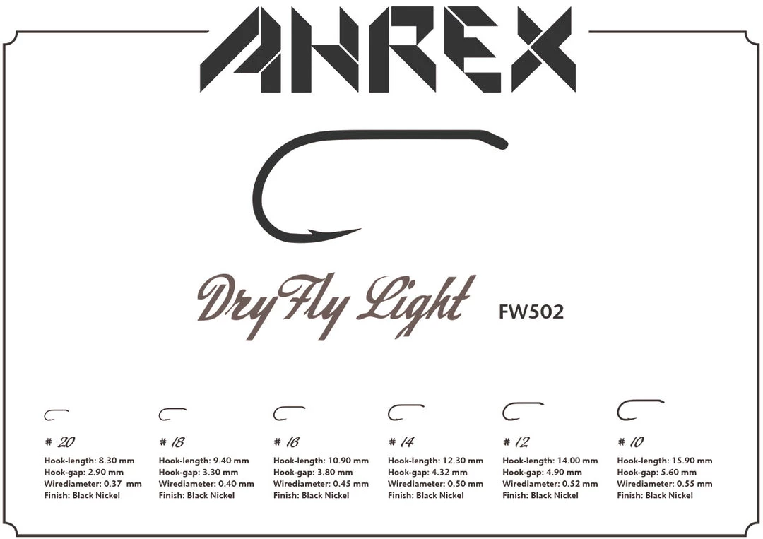 The Ahrex FW502 dry fly light barbed hook is a lighter version of their traditional dry fly hook – perfect for tying your light and delicate dry flies.