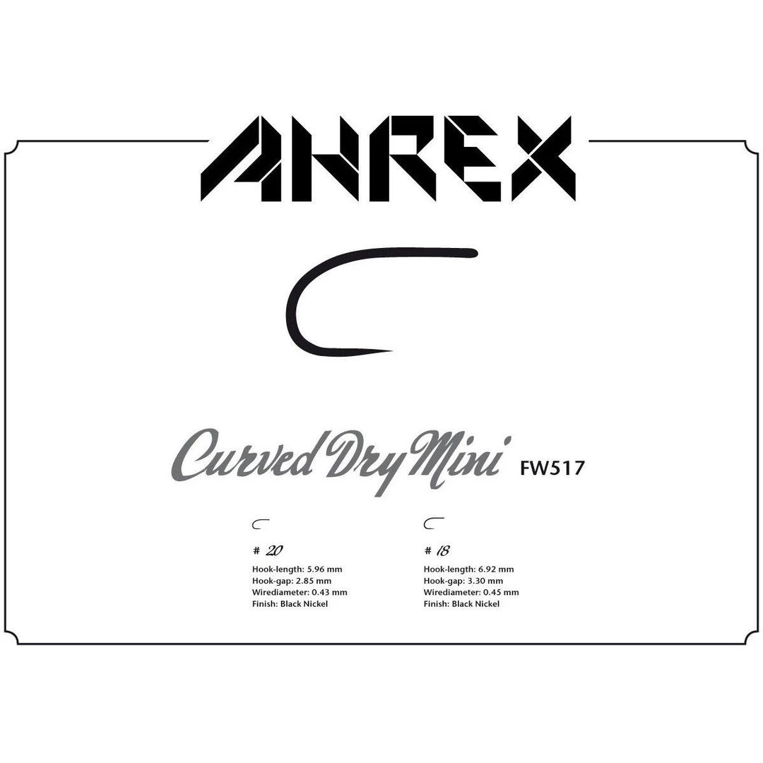 The Ahrex FW517Â is the same design as the curved dry hook, but with some added hook gape for better hook ups when fishing midge size dry flies. It also makes an excellent emerger hook that will sit low in the film when needed. Ahrex barbless hooks were designed to promote responsible fishing practices, so they’re our go-to hook when tying midge dry flies!