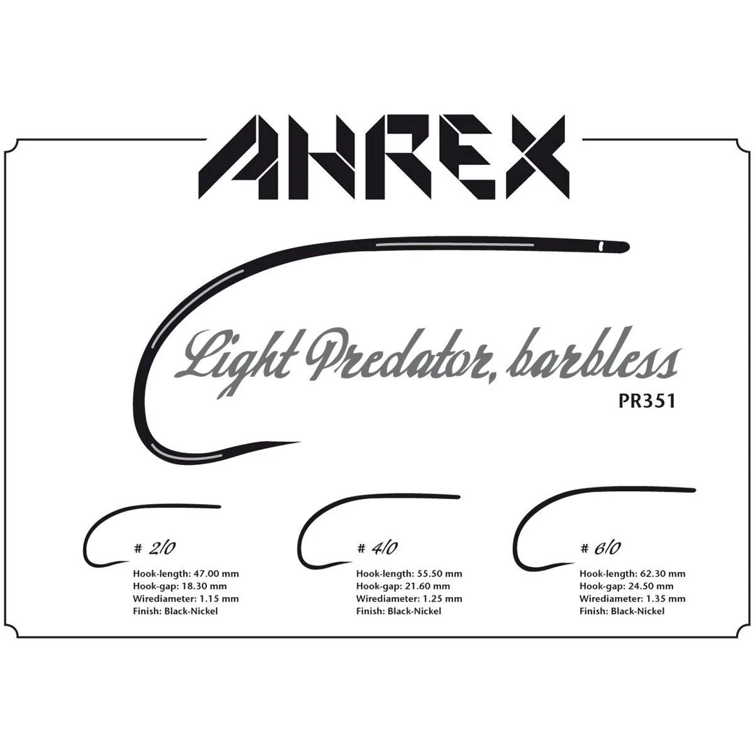 The Ahrex PR351 is a barbless straight-eye streamer and popper hook with light wire and a wide hook gape. This lightweight hook is an excellent choice when tying with deer hair and popper patterns where you want to keep your fly floating high. With more fly fisherman practicing catch and release, this barbless hook was made to appeal to those practicing responsible fishing habits.