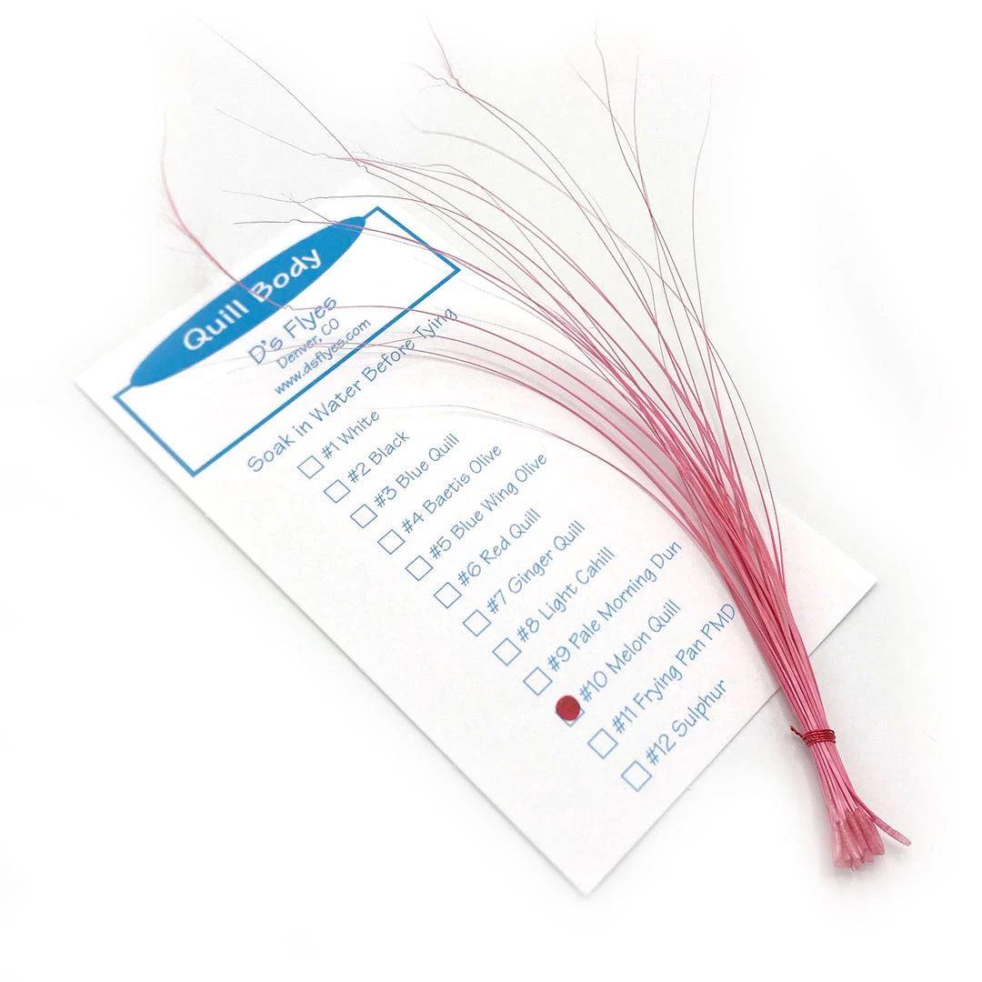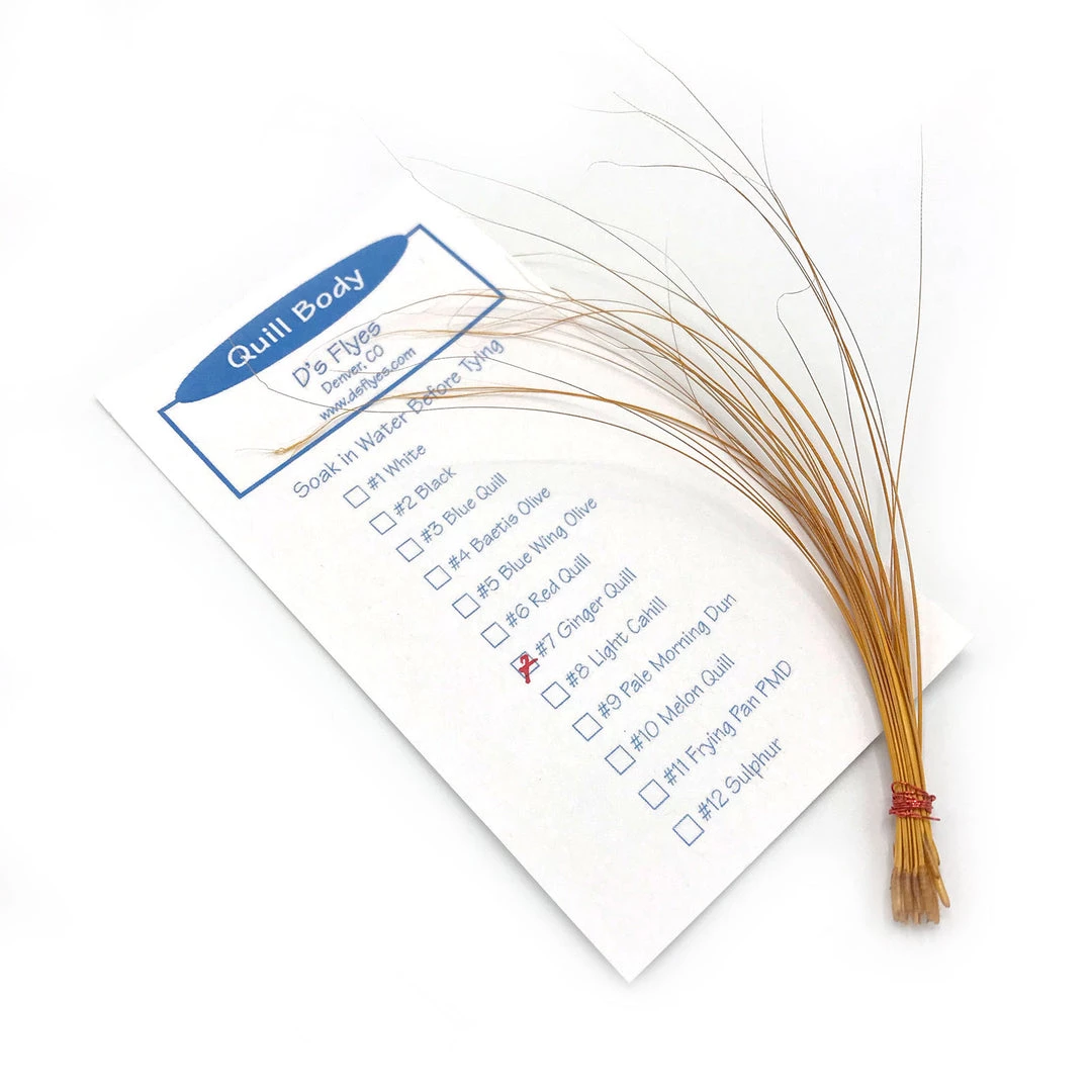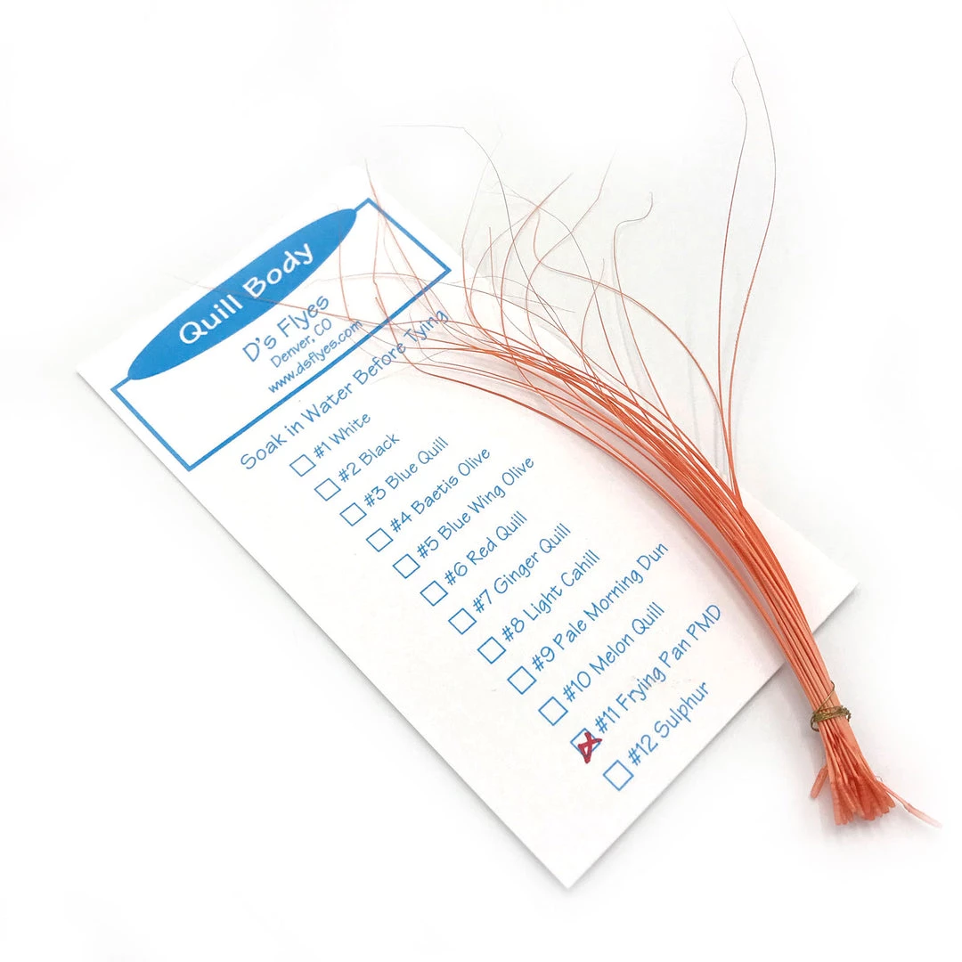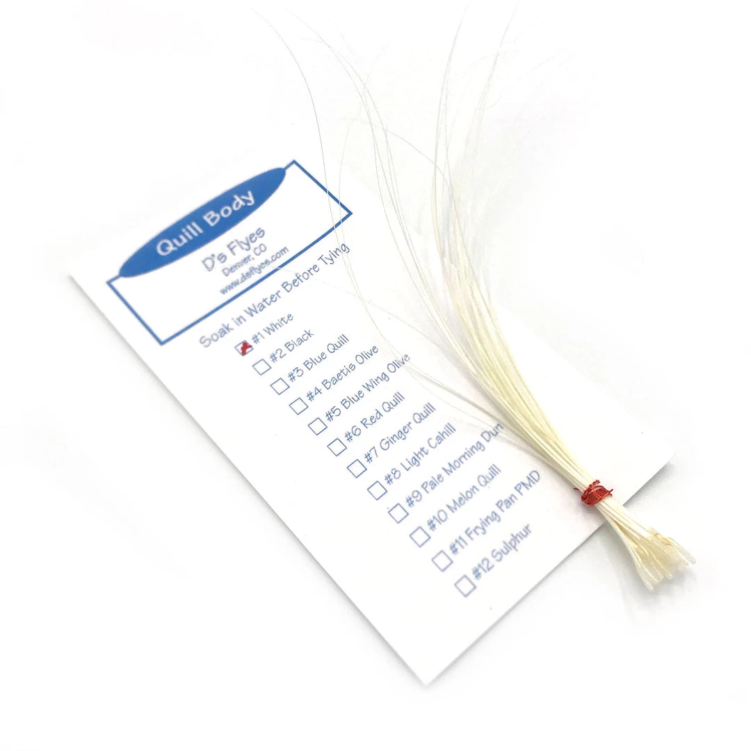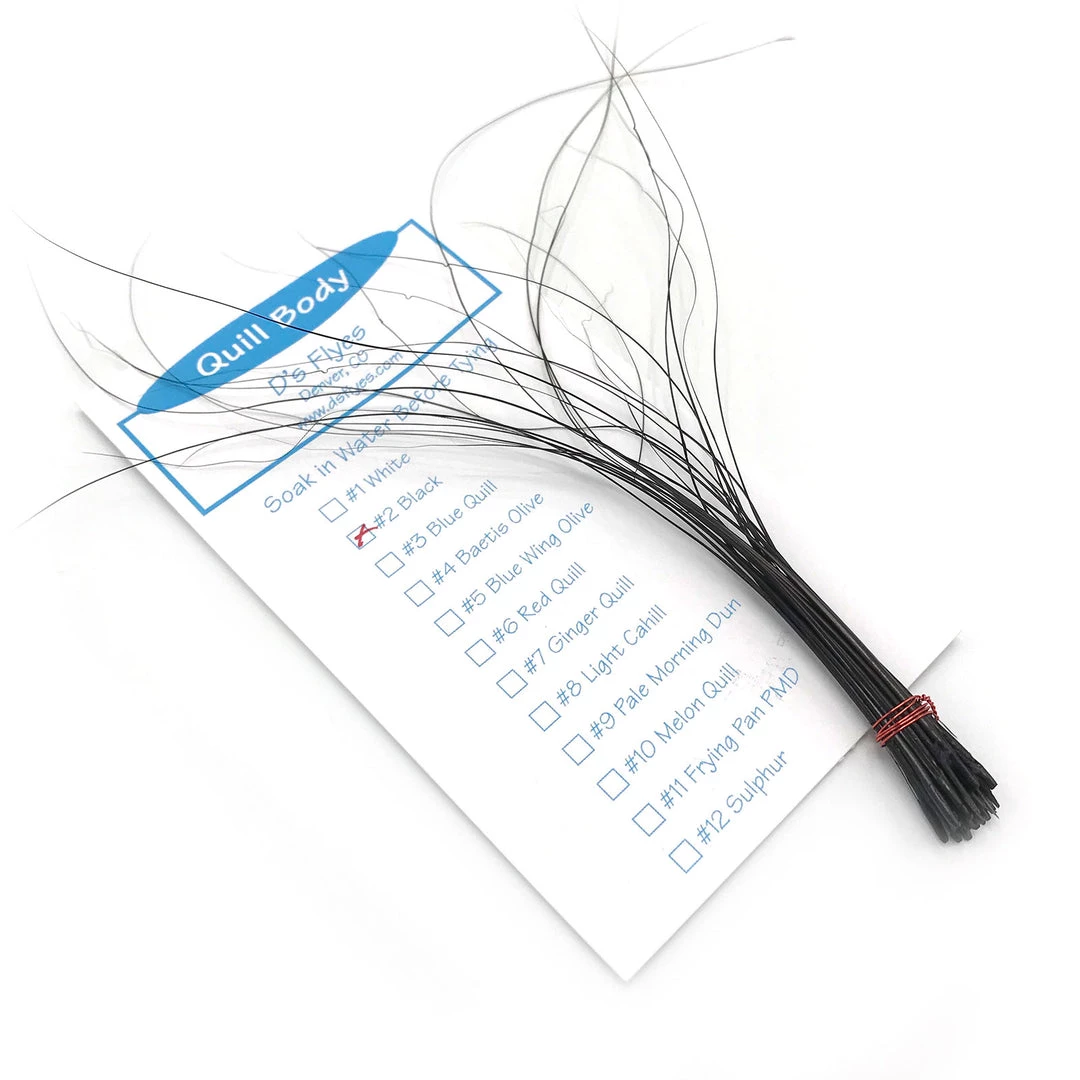 Some of the finest dry fly patterns are wrapped with natural quill bodies such as the A.K. Best style of dry flies. These premium quill bodies are long and tapered for a natural appearance. Bleached and dyed for even coloring, these are some of the best quill bodies available.