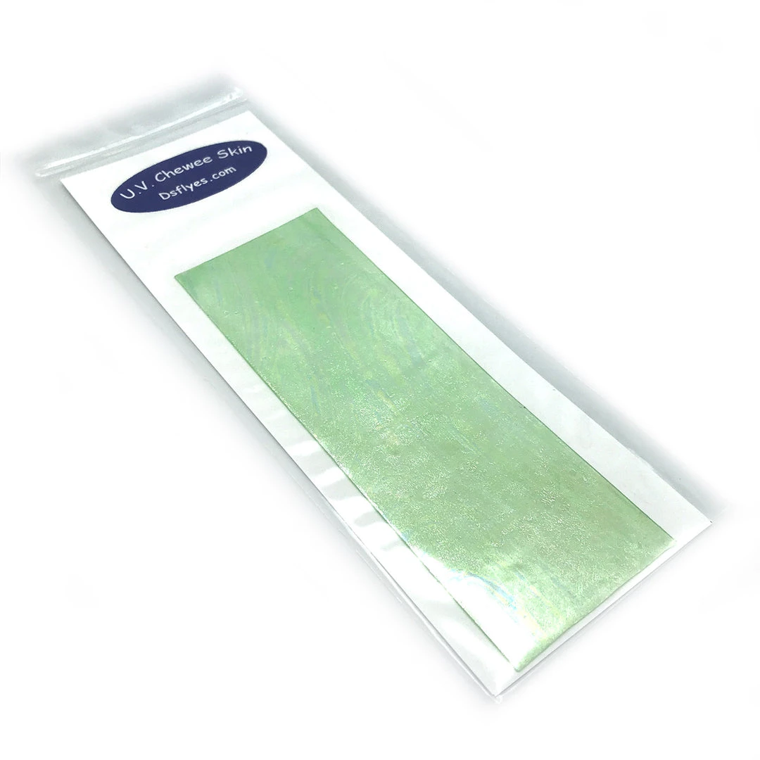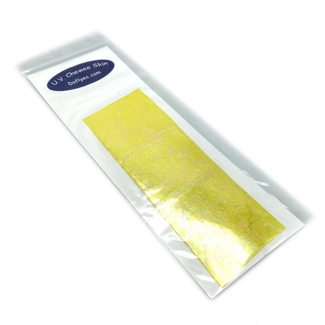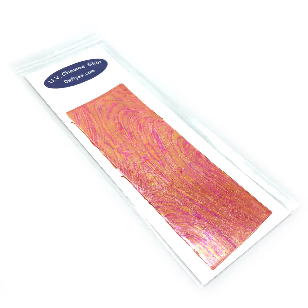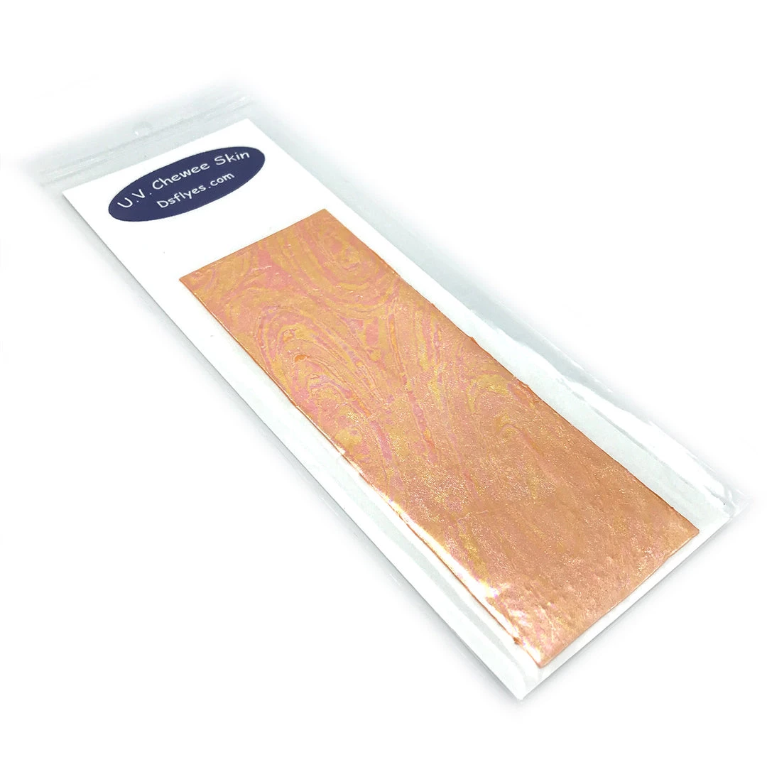 UV Chewee Skin is a pliable material that can be cut and shaped for many fly tying applications. Great for wing cases, bodies, ribs and more. This material wraps easily, has a natural sheen, and since it DOES NOT have an adhesive backing, it is extremely easy to use. The UV reflective qualities of Chewee Skin also make it more visible to trout, salmon, steelhead, and other game fish, even more so than fluorescent materials. UV Chewee skin has a multitude of uses at the fly tying bench and it’s a material that adds that little something that the fish just love. Cut it into strips, wrap it around the hook, and you have an easy and effective worm pattern. The possibilities are endless with this material, so have fun and get creative. Available in 19 fish-attracting UV colors!
