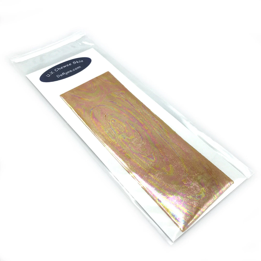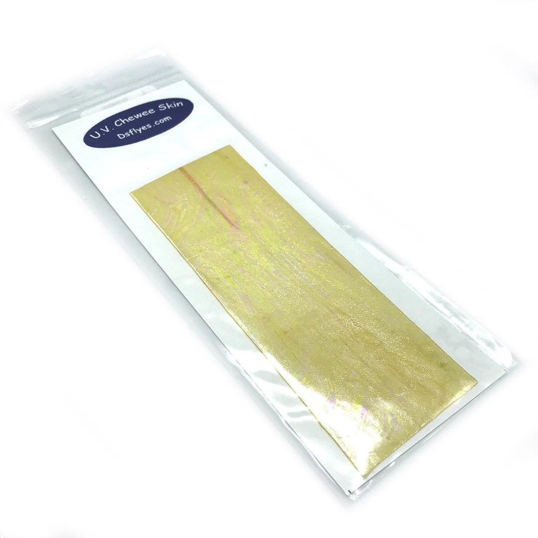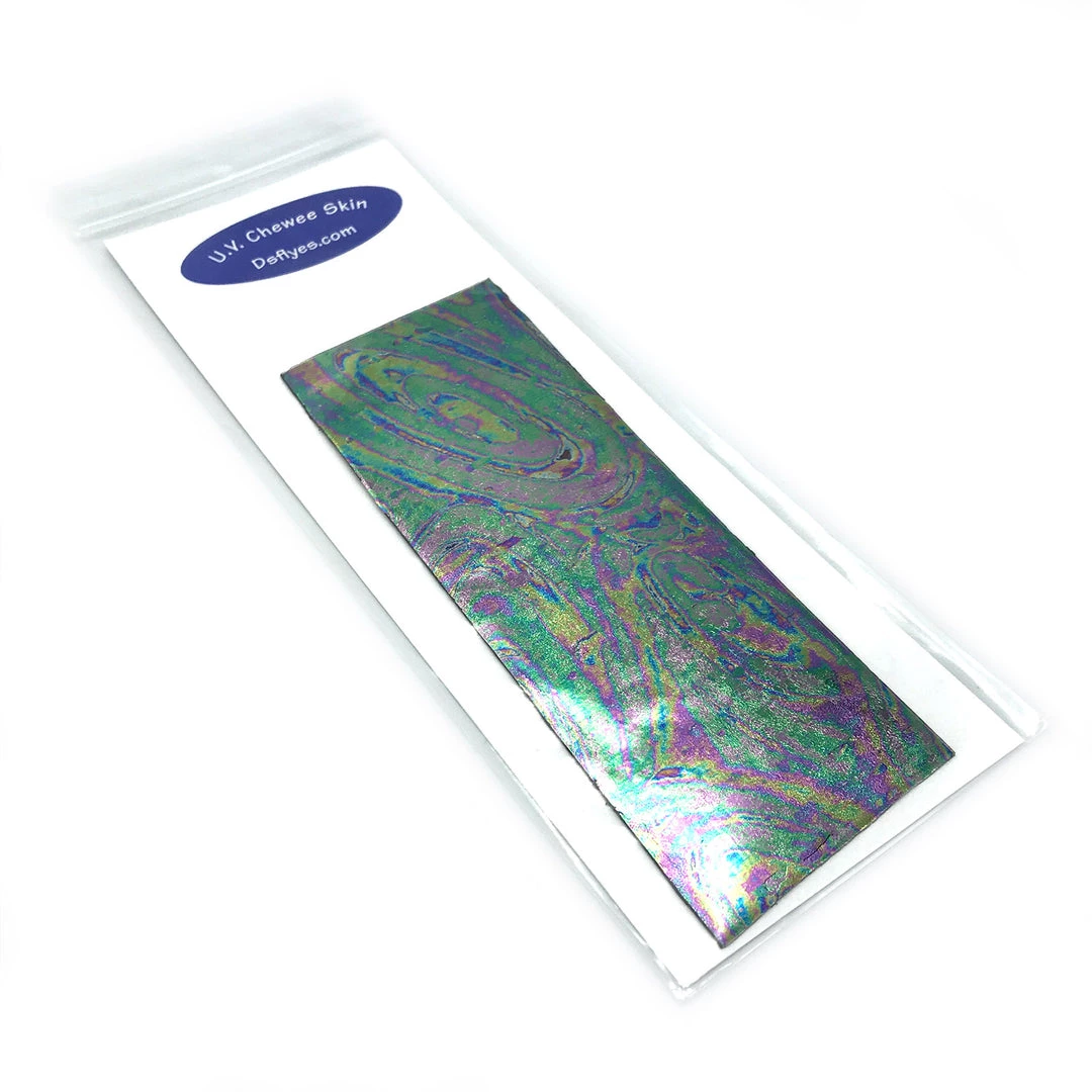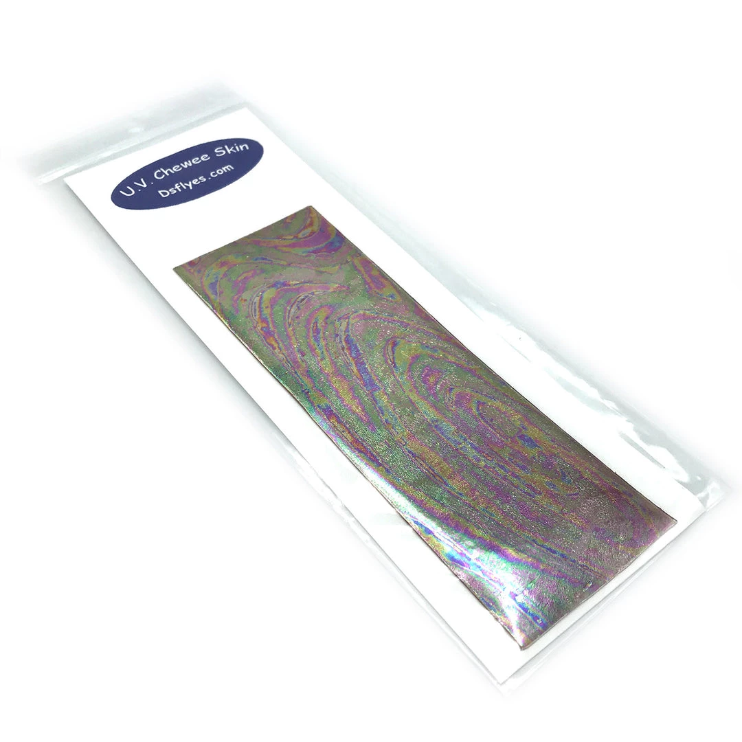 UV Chewee Skin is a pliable material that can be cut and shaped for many fly tying applications. Great for wing cases, bodies, ribs and more. This material wraps easily, has a natural sheen, and since it DOES NOT have an adhesive backing, it is extremely easy to use. The UV reflective qualities of Chewee Skin also make it more visible to trout, salmon, steelhead, and other game fish, even more so than fluorescent materials. UV Chewee skin has a multitude of uses at the fly tying bench and it’s a material that adds that little something that the fish just love. Cut it into strips, wrap it around the hook, and you have an easy and effective worm pattern. The possibilities are endless with this material, so have fun and get creative. Available in 19 fish-attracting UV colors!