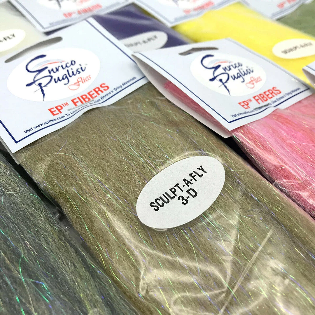 EP Sculpt-A-Fly Fibers are a special blend of EP Fibers & EP Sparkle that create the perfect amount of movement and flash for your streamer, baitfish, and saltwater fly patterns. Sculpt-A-Fly fibers are easy to tie with and allow you to “sculpt” your flies the way you want and they’ll keep their shape. Save time at the fly tying bench with these perfectly blended, ready-to-go fibers from Enrico Puglisi. Sculpt-A-Fly fibers are available in 15 solid colors and 25 blended (3D) colors, all of which have contrasting EP Sparkle fibers added to trigger fish to bite!