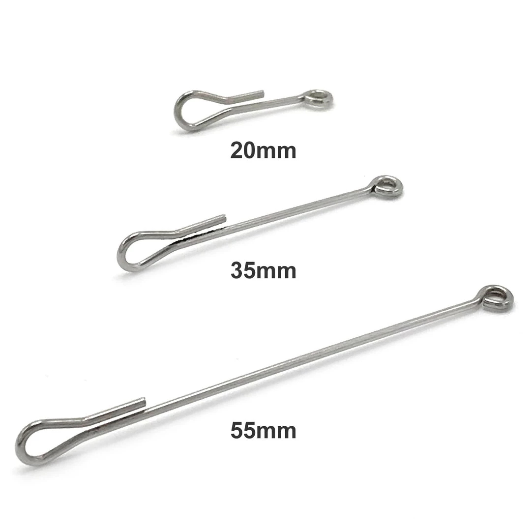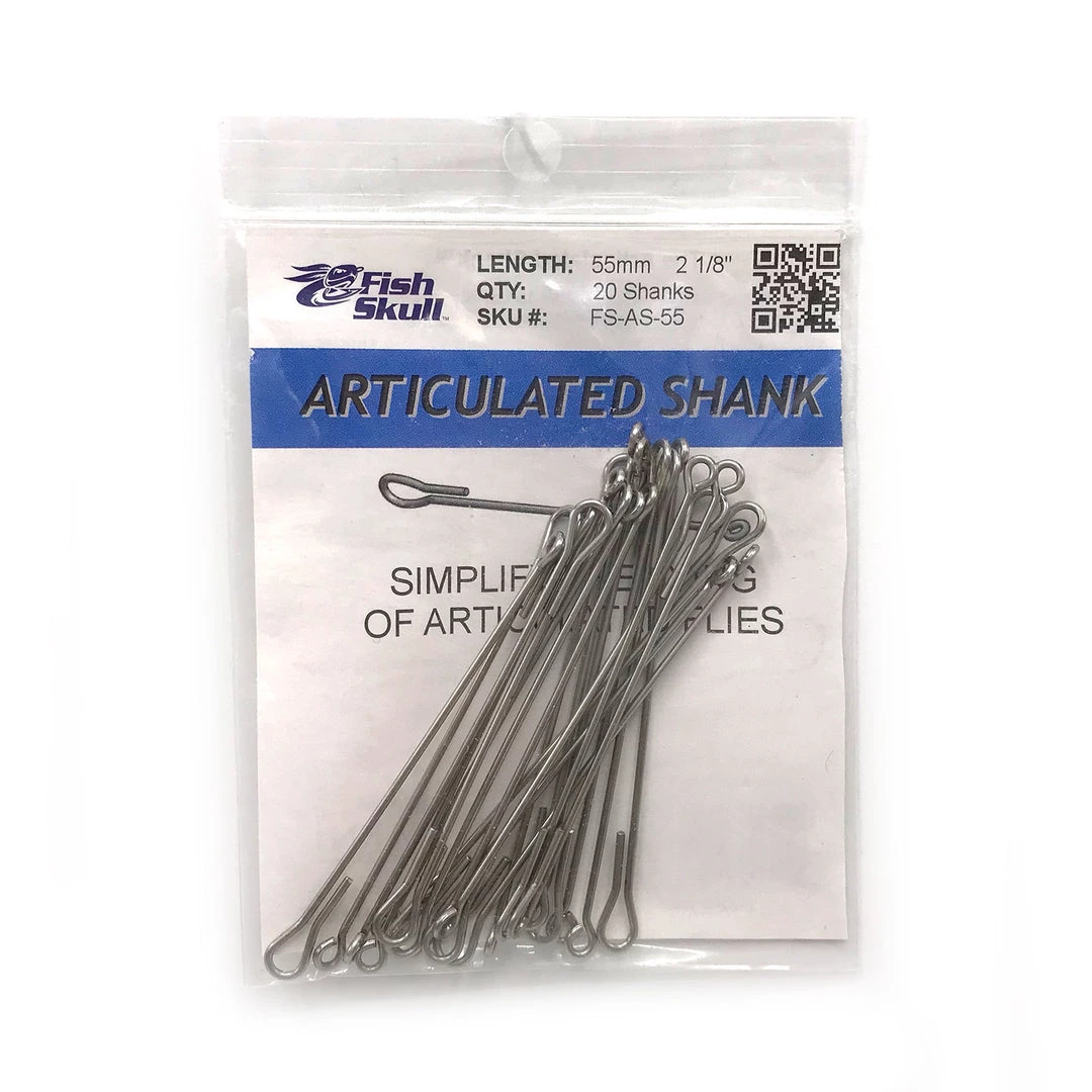 The Fish-Skull Articulated Shank is an innovative fly tying material designed to simplify the process of tying articulated flies. These high quality shanks are a key component for tying articulated streamers, poppers, and sliders, as well as streamers that use a free-swinging stinger hook, such as intruder-style salmon and steelhead flies. Combine with Fish-Skull Baitfish Heads, Fish-Masks , and Sculpin Helmets to create irresistible, realistic streamer patterns. These stainless steel shanks allow for saltwater use and are designed for size 4 hooks and larger. Available in 10mm, 35mm, and 55mm lengths.