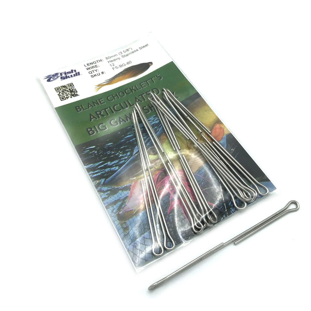 Fish-Skull & Blane Chocklett teamed up to develop the ultimate big game fly tying shank. The Articulated Big Game Shank was designed to meet the demands of large, articulated flies used when targeting river, lake, and saltwater monsters! The Articulated Big Game Shank is optimized for both strength and fly length, allowing you to tie big flies that can hook, hold, and land the largest predatory game fish. When you want the confidence of landing the largest, most aggressive fish like pike, muskie, steelhead, salmon, and toothy saltwater fish, you can’t afford not to have the Fish-Skull Articulated Big Game Shank on the end of your line!