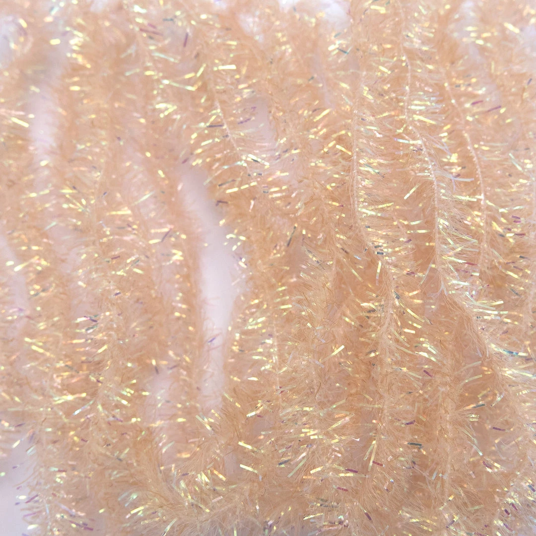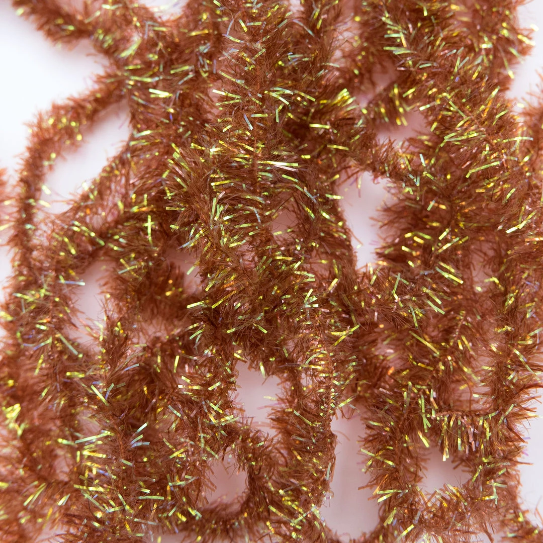 Hareline’s Cactus Chenille is a loose weave mylar chenille, similar to ice chenille, but with pearlescent fibers for added sparkle. Cactus chenille adds a lot of flash, color, and action to your fly and is an extremely easy and effective material to work with. Wrap it tightly for a thin bodies, or multiple times for larger bodies. Great for tying wooly buggers, bass flies, plus the Davis “SPANKER”, a world record winning silver salmon fly fished throughout Alaska.