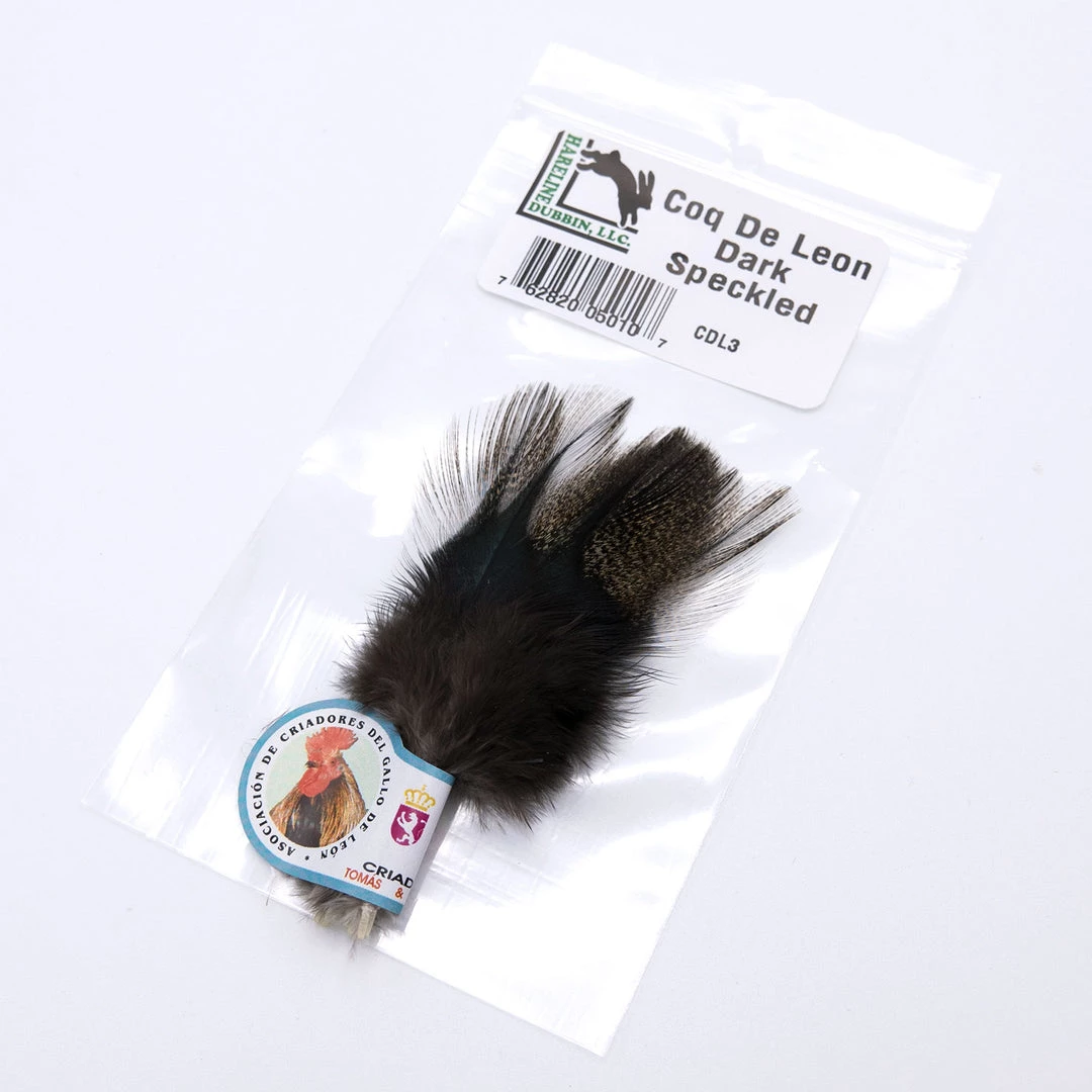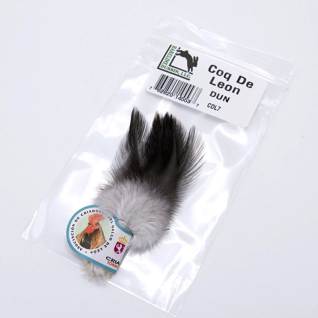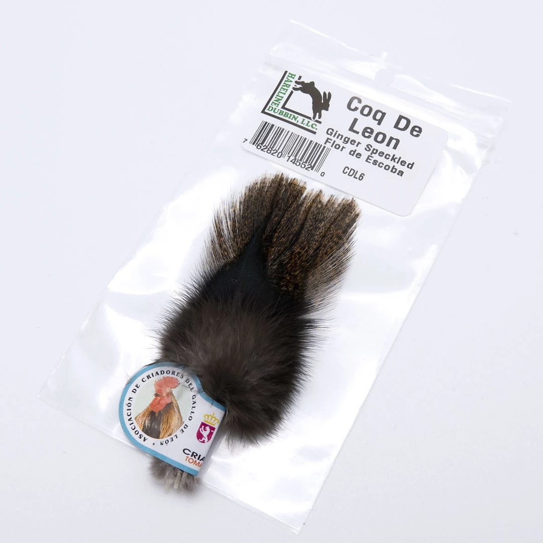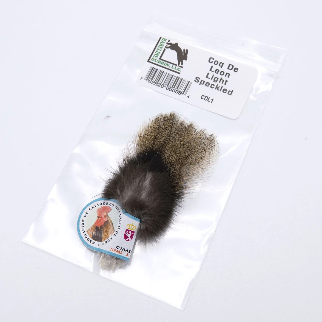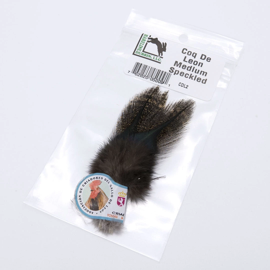 Dating back to 1624 in Spain, Coq de Leon are some of the oldest birds bred for their feathers. Coq de Leon feathers have exceptionally long, stiff barbs that glisten and quiver with life, making them the ultimate in dry fly tailing. The sheen and shimmer of these feathers add a special quality to your flies at the vise, and a magical semi-translucency in the water. Just move them around under a light and you’ll see what we mean! These high quality Coq de Leon feathers have been hand-selected for their superior qualities.
