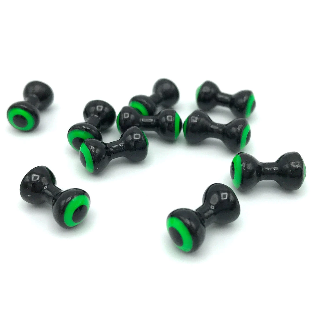 Hareline’s double pupil lead eyes have contrasting colored pupils that give your fly a lifelike appearance. These high quality lead eyes add a ton of weight, action, and a realistic look to your fly that are unrivaled by anything else on the market. Double pupil lead eyes are a mainstay fly tying material for tying bass, pike, salmon, and saltwater streamers flies such as the Clouser Minnow and more. If there was one dumbbell eye that we would recommend to our customers, this would be the one! Double pupil lead eyes are available in your choice of 5 sizes and 10 fish-attracting colors. 10 eyes per pack.