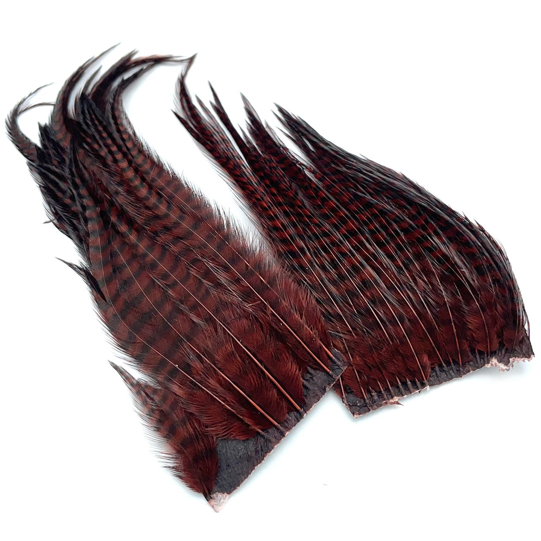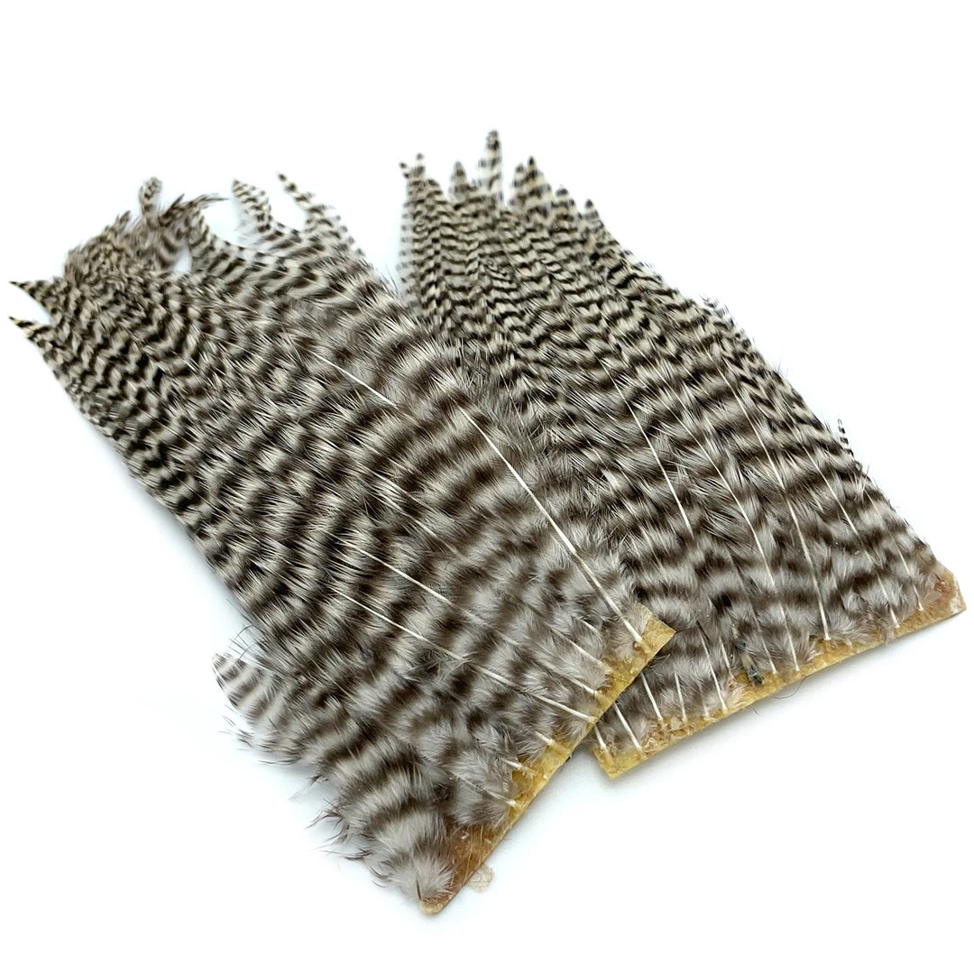 Hareline’s Bugger Hackle Patches feature two sections of saddle feathers which are well suited for tying medium to large sized wooly buggers and other similar patterns. The feathers on these Bugger Hackle Patches measure approximately 6 inches in length, giving them the perfect amount of taper when palmered around your hook. If you’re looking for a great way to tie up some wooly buggers for your fishing season, look no further than these bugger hackle patches from Hareline. Available in 7 of the most popular colors!