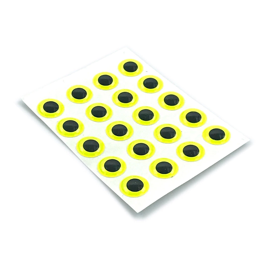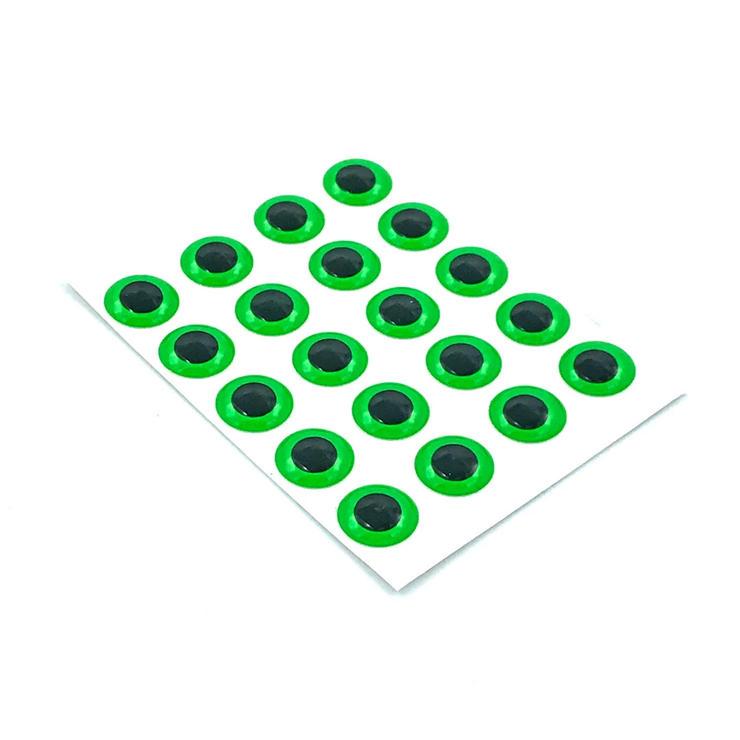 Hareline’s Fluorescent Fly Eyes are the ultimate in bright fly tying and fishing lure eyes. These 3D domed stick-on eyes are extremely bright and fluoresce, making them very attractive to fish in dark murky water. Adhere them to your favorite baitfish patterns and fishing lures to add a pop of bright color that will trigger fish to bite when nothing else will! Fluorescent fly eyes feature an adhesive backing, but we recommend adding a drop of Zap-A-Gap for a permanent adhesion. Available in your choice of 4 popular colors and 6 sizes listed below. 20 eyes per pack!