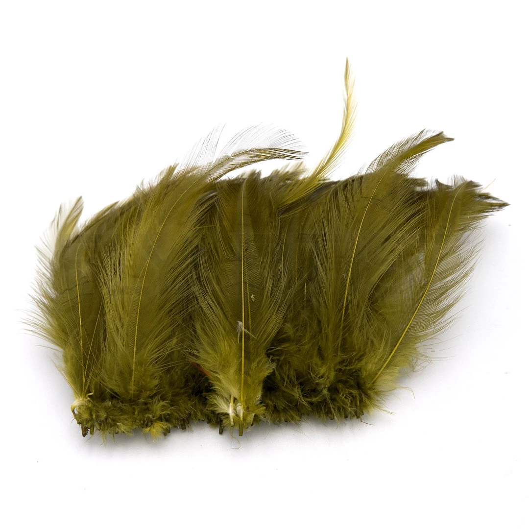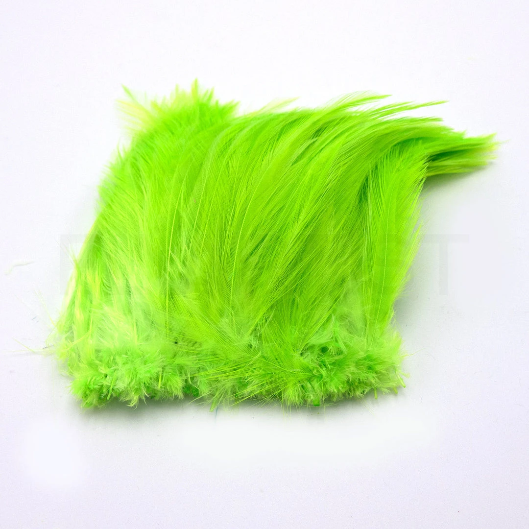 Hareline’s saltwater neck hackle feathers are beautifully dyed with stiff quills and soft glossy barbules. These high quality feathers are wide and put off a ton of action in the water. Great for bass bugs, muskie, tarpon, and other large streamer patterns.