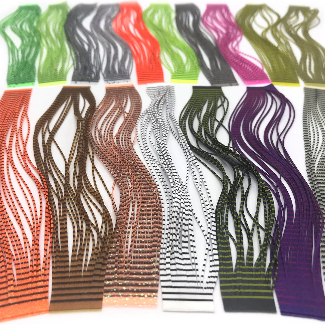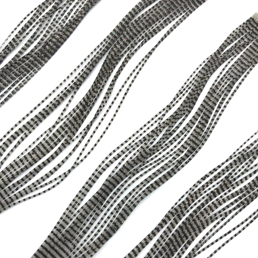 Hareline’s Grizzly Flutter Legs are the buggiest legs on the market. These high quality silicone legs are barred on both sides and feature a flat profile that creates an attractive wiggle in the water. Perfect for tying nymphs, streamers, and even larger dry flies. Since Grizzly Flutter Legs are made of silicone, they are extremely durable and won’t brittle in the sun like rubber legs. If you’re looking for the buggiest legs for fly tying, these are the ones to get.