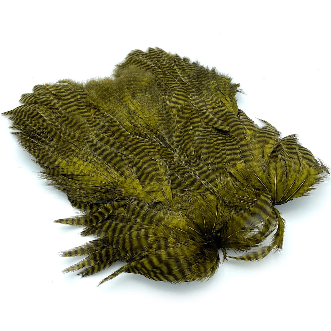 Hareline’s Grizzly Soft Hackle Marabou Patches offer the fly tier a wide variety of feather sizes to choose from. The barbs of these soft hackle feathers are webby and add a flowy, lifelike movement in the water. The striped pattern of these grizzly marabou feathers add a sense of realism and contrast that will trigger the most stubborn fish to bite. The stems at the tip are soft while the stem at the base get stiffer, perfect for smaller splay tail patterns. These premium soft hackle patches are ideal for feather gamerchangers, streamers, and other fresh and saltwater flies. Grizzly soft hackle marabou can be hackled, used for tails, gills, and so much more. If you need a large amount of soft hackle feathers in a wide variety of sizes, we can’t recommend these grizzly soft hackle patches enough. Available in 7 popular colors!