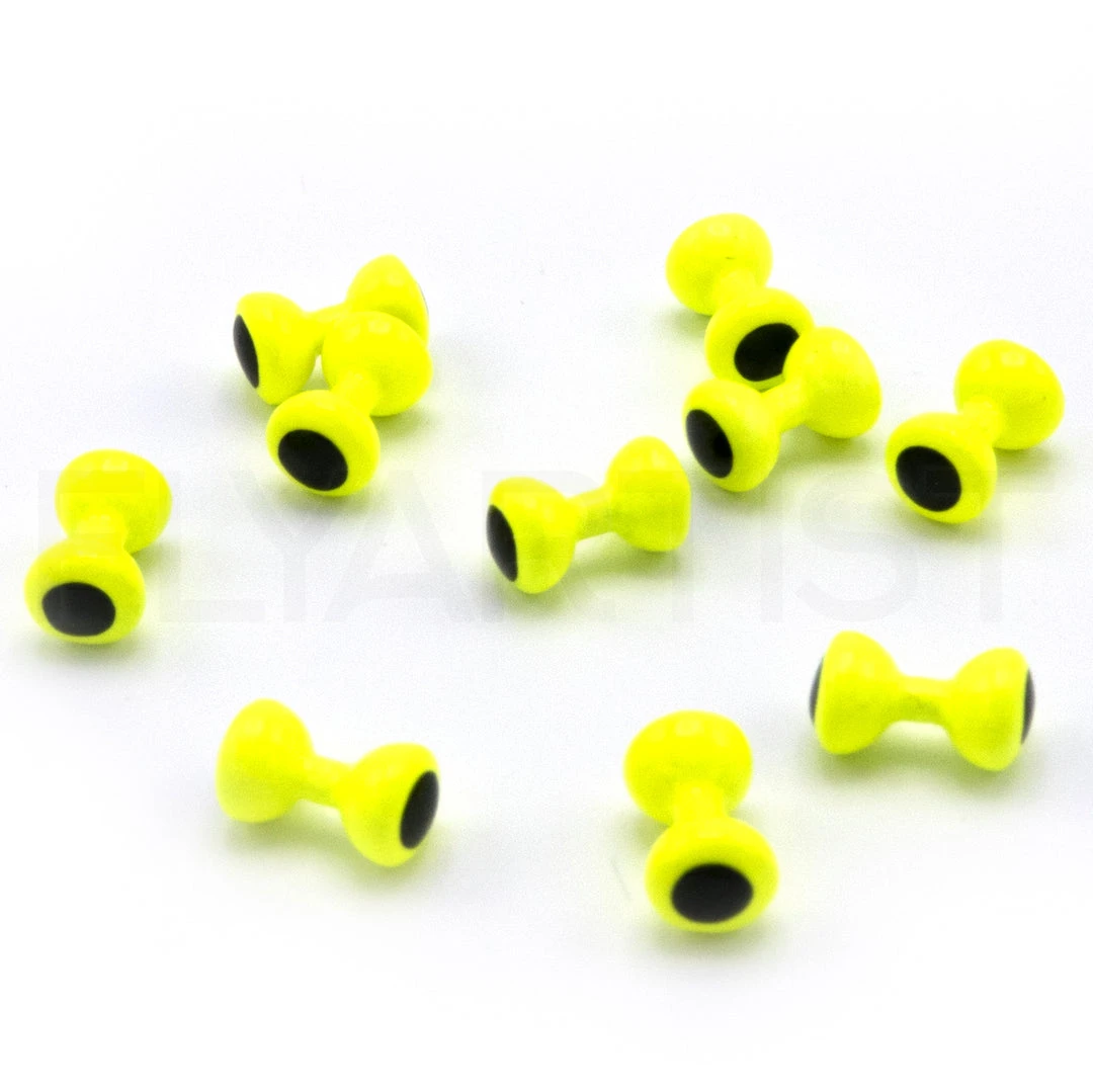 Hareline’s painted lead dumbbell eyes have black pupils and add weight, action, and a realistic look to your fly. A mainstay for bass, pike, salmon, and saltwater streamers. 10 eyes per pack.