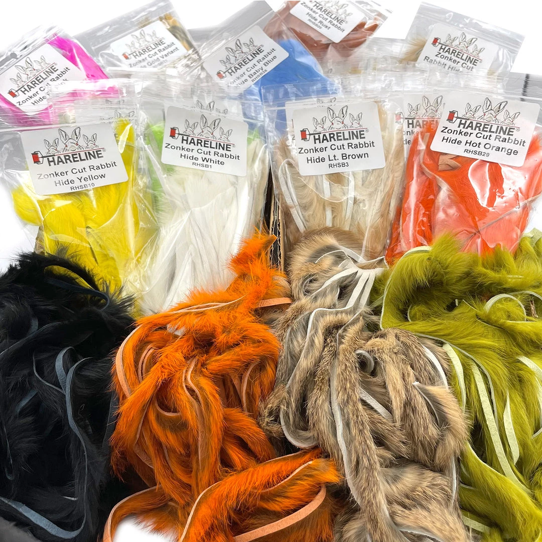 Hareline’s Zonker Cut Rabbit Hides are made from the highest quality Grade A rabbit hides. These hides are dyed and then cut into 32 individual strips. These 1/8″ wide zonker strips are perfect for commercial fly tiers, fishing guides, as well as any fly tier that wants to tie up a lot of a particular color of fly. Perfect for zonkers, leech patterns, and more. Hareline is the absolute best at dying animal products and these zonker cut rabbit hides are no exception. These zonker cut rabbit hides will save you a ton of time and are the most economical way to get a ton of rabbit strips. Available in 44 popular colors!