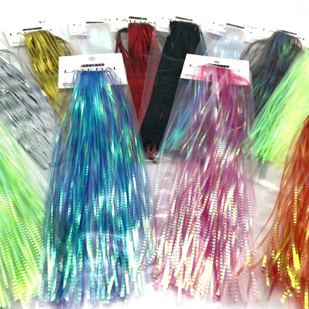Hedron Lateral Scale is a durable saltwater Flashabou that is crimped for a scaled look and creates an irresistible fluttering action in the water. It is great for large freshwater and saltwater minnow and baitfish patterns as well as bucktails, spinnerbaits, jigs, and poppers for fishing for warm water species. Add a single strand on each side of your fly and BAM! Lateral Scale is available in your choice of solid and pearl colors. Pick up a few colors to try and see how effective this material is in triggering fish to bite!