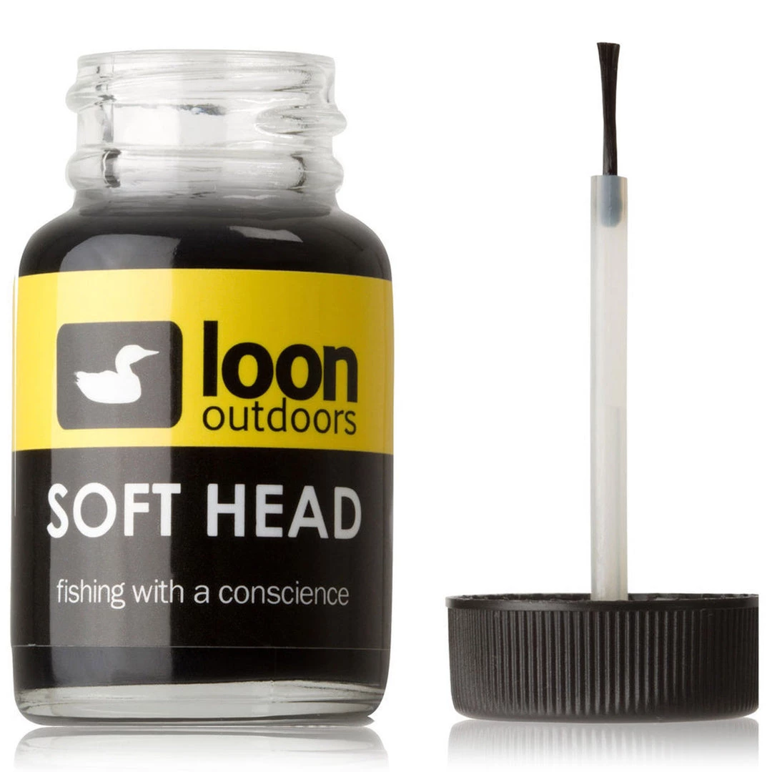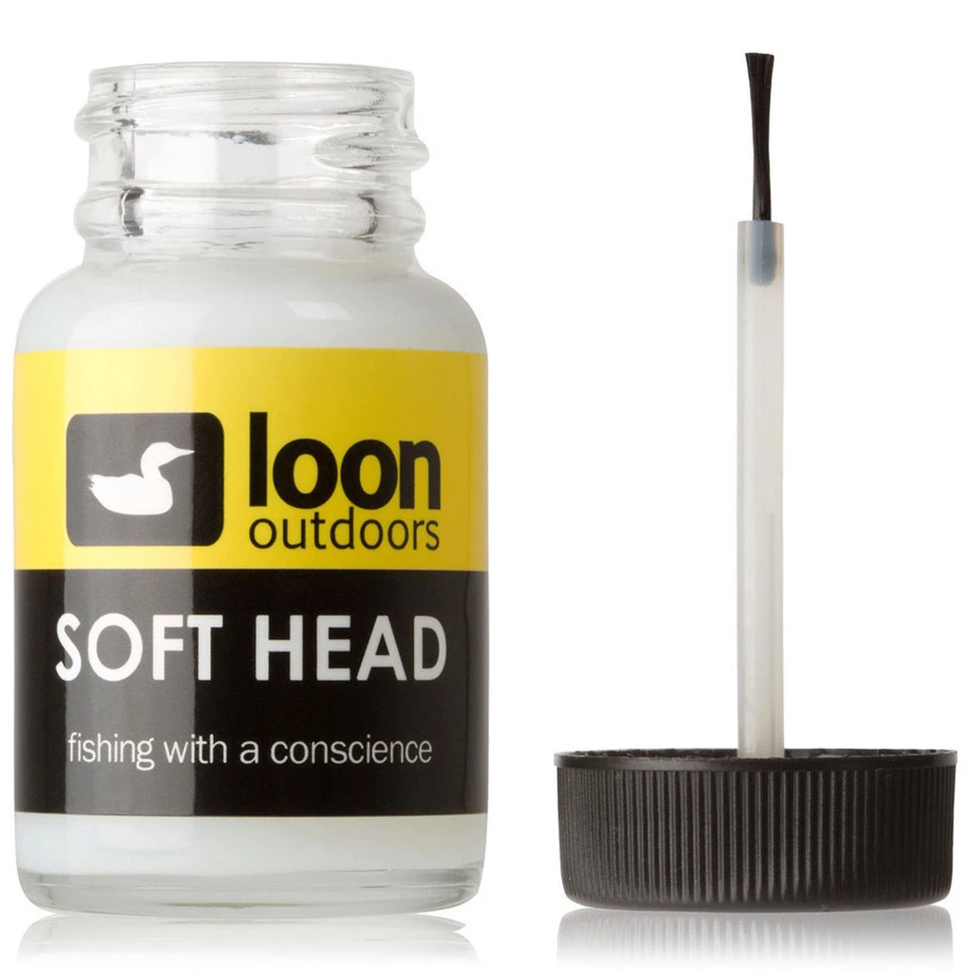Loon Soft Head is a thick fly tying head cement that is odorless, non-toxic, and dries to a soft and pliable finish. It dries to a workable tack in 20 minutes and is an excellent choice for wing cases on nymphs as well as building up minnow bodies.