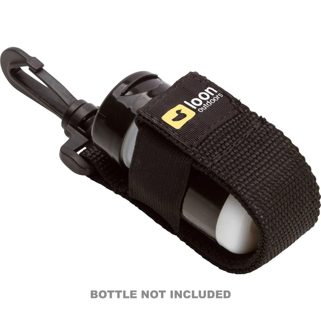 The Loon Outdoors Medium Caddy fits Loon’s Easy Dry, Blue Ribbon, and Top Ride sized bottles and stores them securely and conveniently with an attachment clip.