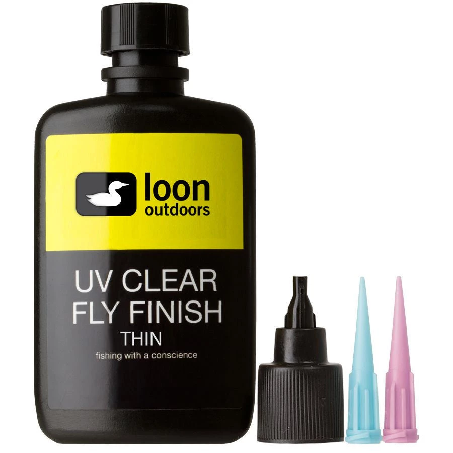 UV Clear Fly Finish Thin is a UV resin with less viscosity than the original. It is perfect for delicate fly tying applications, going on thin without sacrificing curing speed and strength. This thin formulation can be used to make smaller heads, bodies or wing cases, or to coat a small thread head. The possibilities are endless.