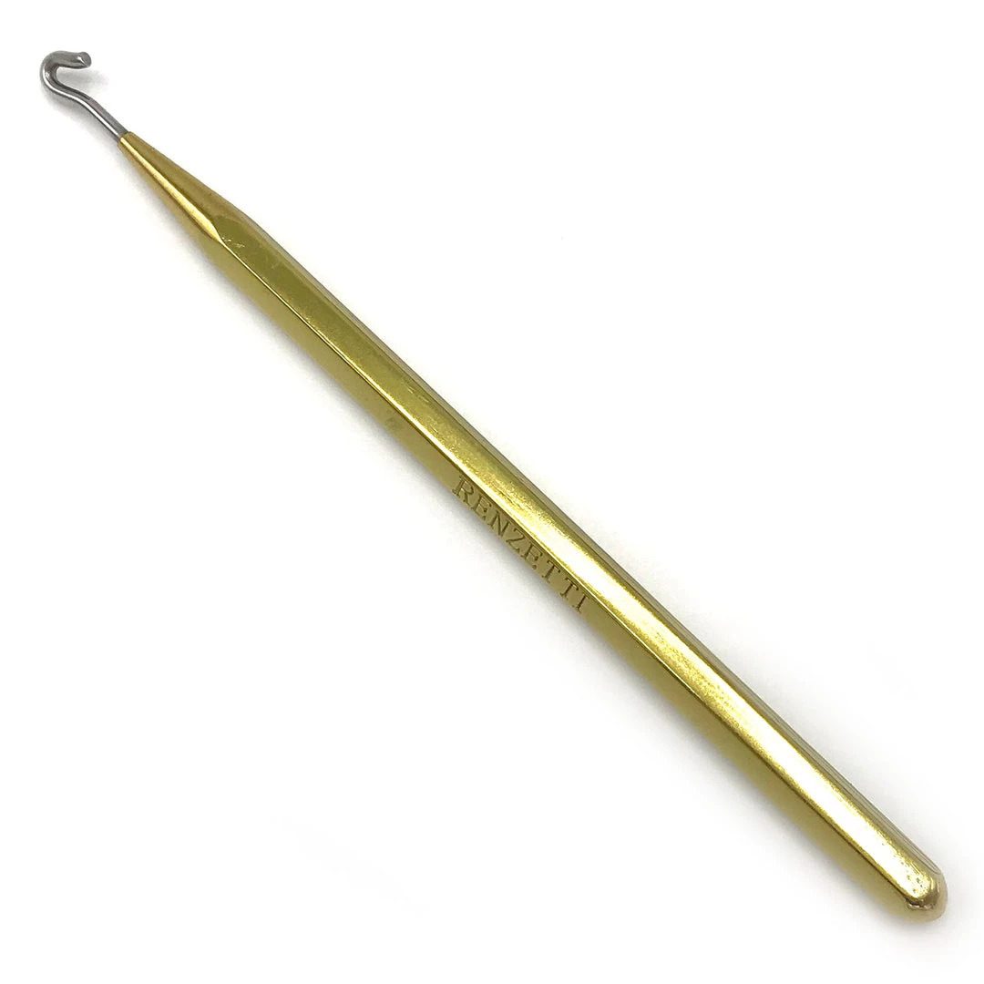 The Renzetti Dubbing Twister is constructed of a hexagonal brass handle with a rounded hook end. This elegant dubbing twister is used for effortlessly spinning dubbing loops with the twist of the handle. It is properly weighted for perfect tension on your dubbing loops and the hex-shaped Renzetti engraved handle ensures that it won’t roll off of your fly tying bench.