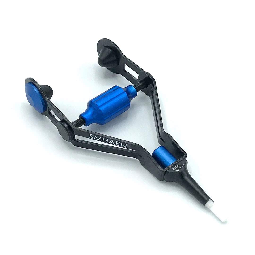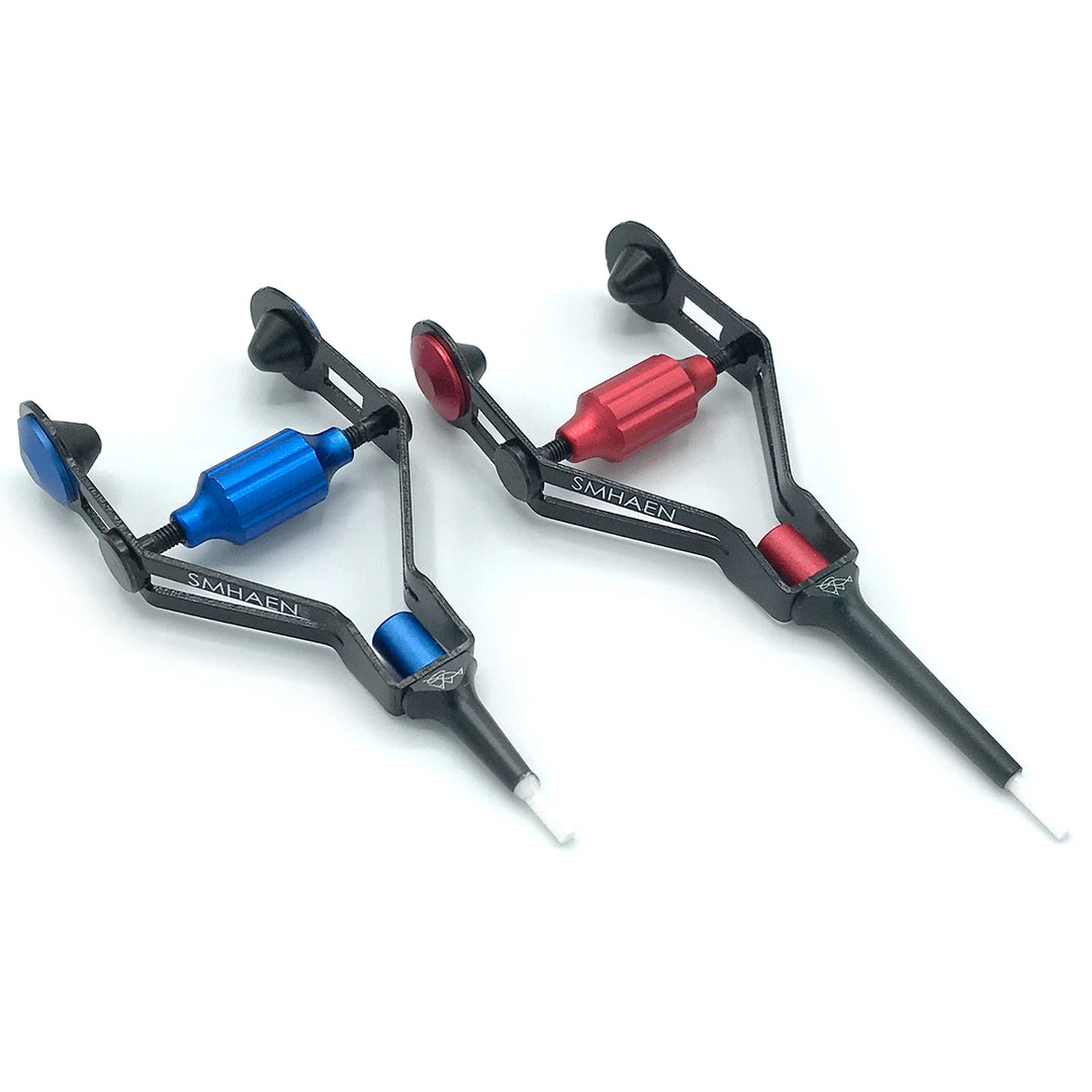 The Smhaen Bobbin ushers in a new era of fly tying tools designed for improved comfort, durability, and above all else, functionality. Engineered for superior thread control, the Smhaen bobbin features a draw bar that runs through the frame allowing you to adjust tension on the spool by effortlessly spinning the dial. This can be easily done while tying, allowing for precise tension changes on the fly. The internal funnel makes threading the bobbin easy and the ceramic tip won’t fray your thread. Ergonomic grips offers a comfortable hold in a balanced position and encourages precise thread wraps. Available in your choice of two sizes, Regular (Red) or Midge (Blue).