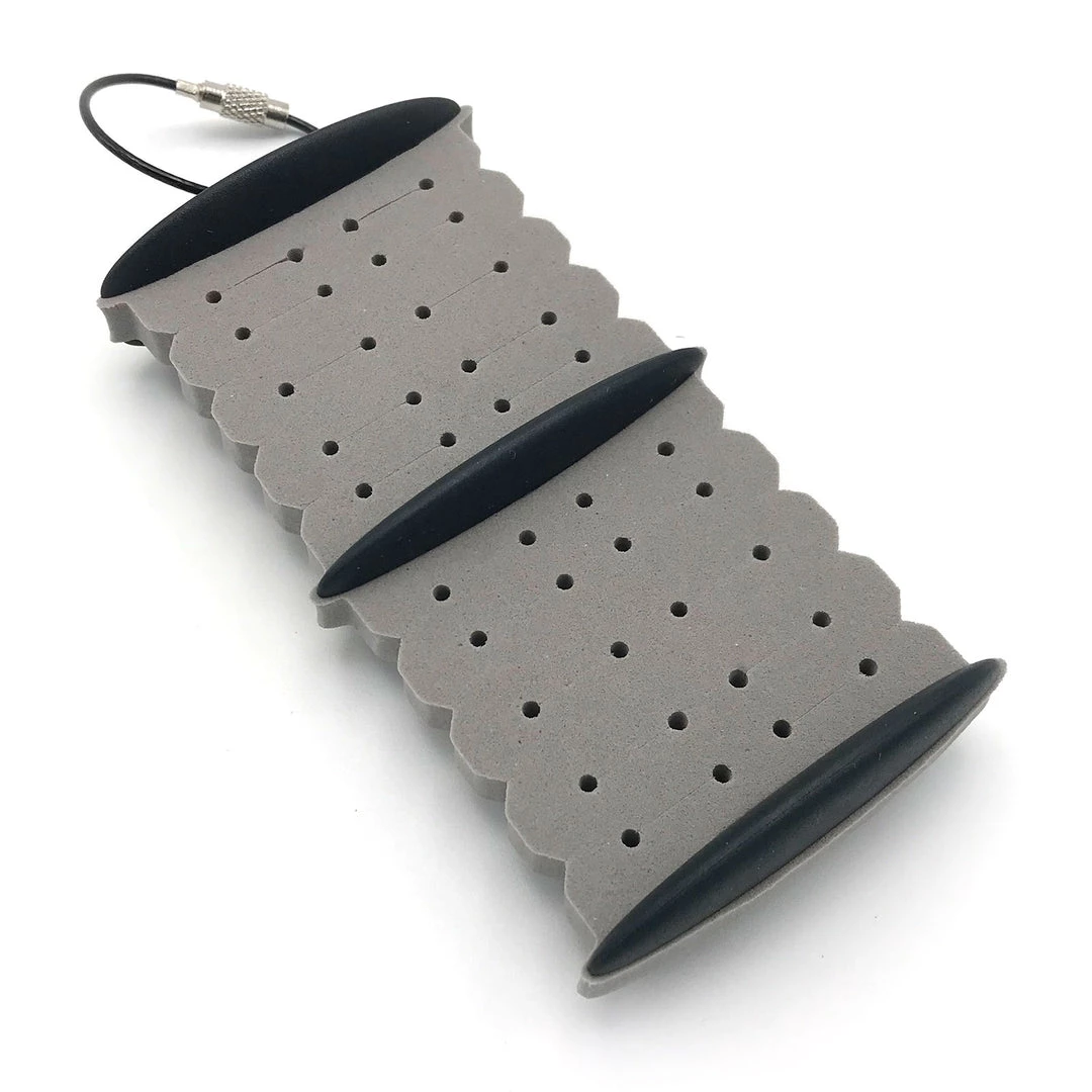 The Smith Creek Rig Keeper is a dropper rig system that allows anglers to easily carry multiple hook rigs that are held securely and protected from damage or loss by its patented exposed ribs. The Rig Keeper holds all types of dropper rigs; Czech, truck and trailer, dry fly and dropper, multiple wets, even works with salmon and steelhead setups. But whatever the style, it holds leaders and rigs without tangles, and it’s quick and simple to use. As well as having a place to store the rigs that you’ve just changed out, it’s a real advantage to be able to make dropper rigs the night before and have them ready to use on fishing day. Not spending valuable time making up rigs while you’re fishing means more time on the water. You can wear it, pocket it, or throw it in your tackle box. The exposed ribs keep flies and hooks from getting hung up and damaged.