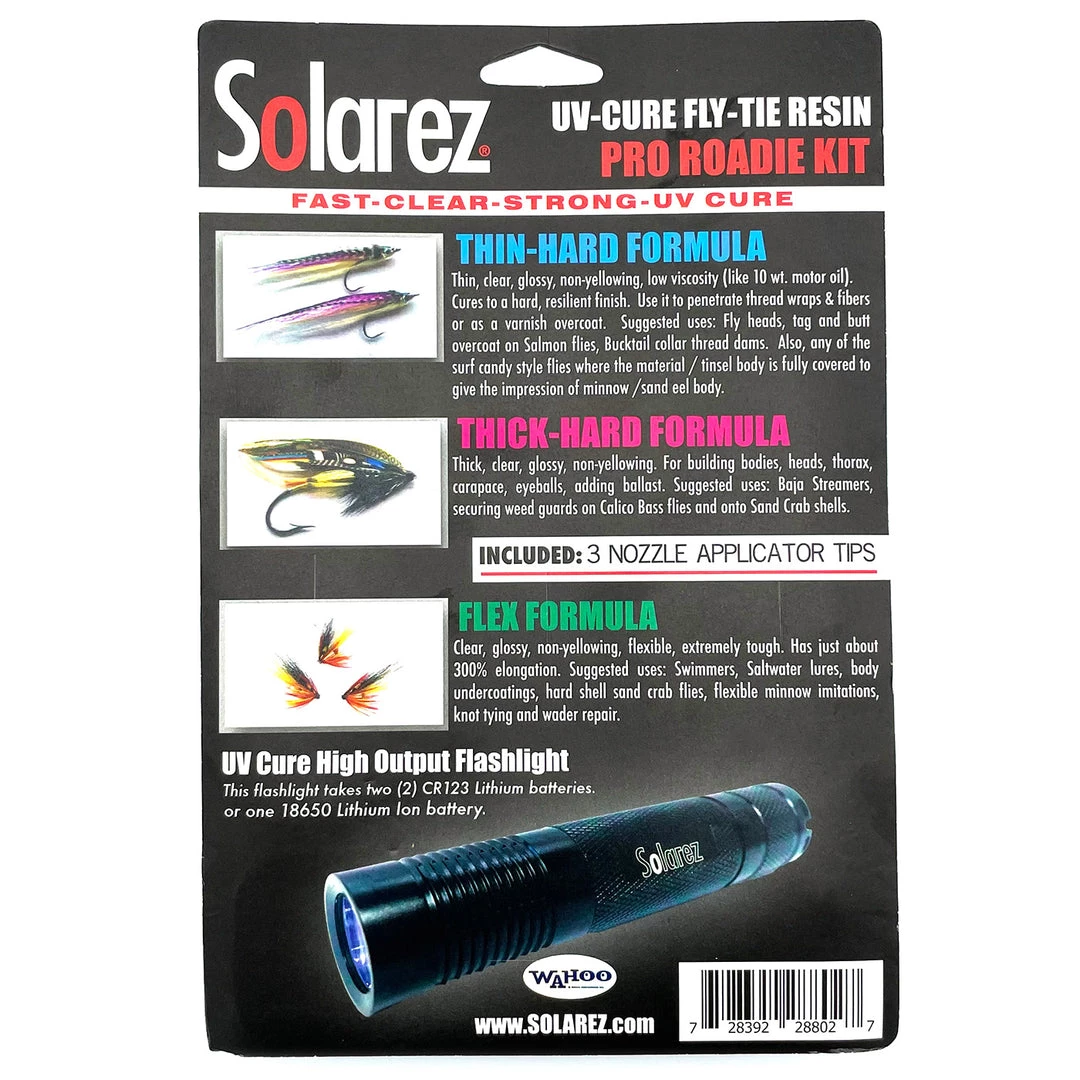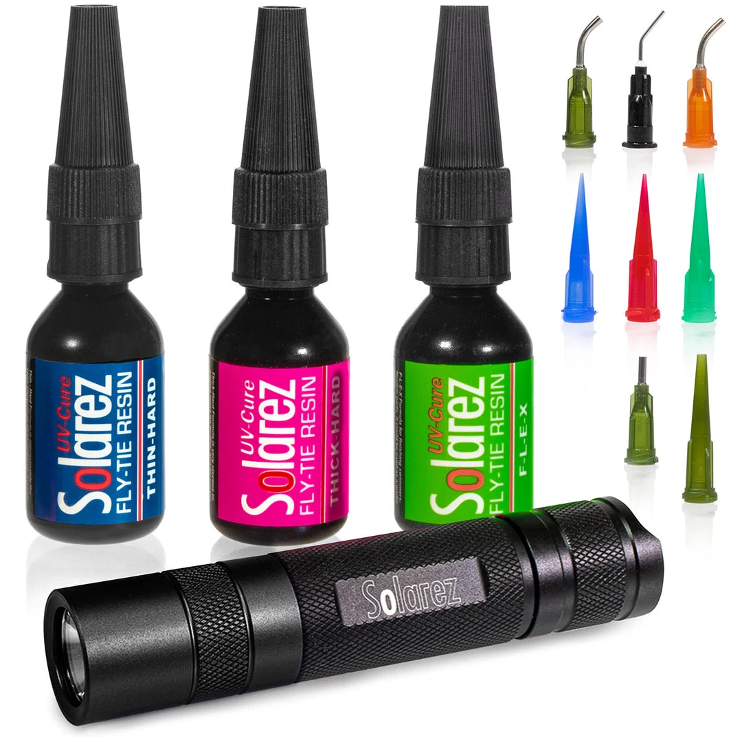 The Solarez Pro Roadie Kit provides the fly tier with an excellent entry point into tying with UV curing resins. This UV fly tying kit includes three 1/2 oz bottles of their most popular UV resin formulas as well as a high-output UV flashlight to cure them with. The possibilities are endless when tying with UV resins and we can’t recommend the Pro Roadie Kit by Solarez enough!