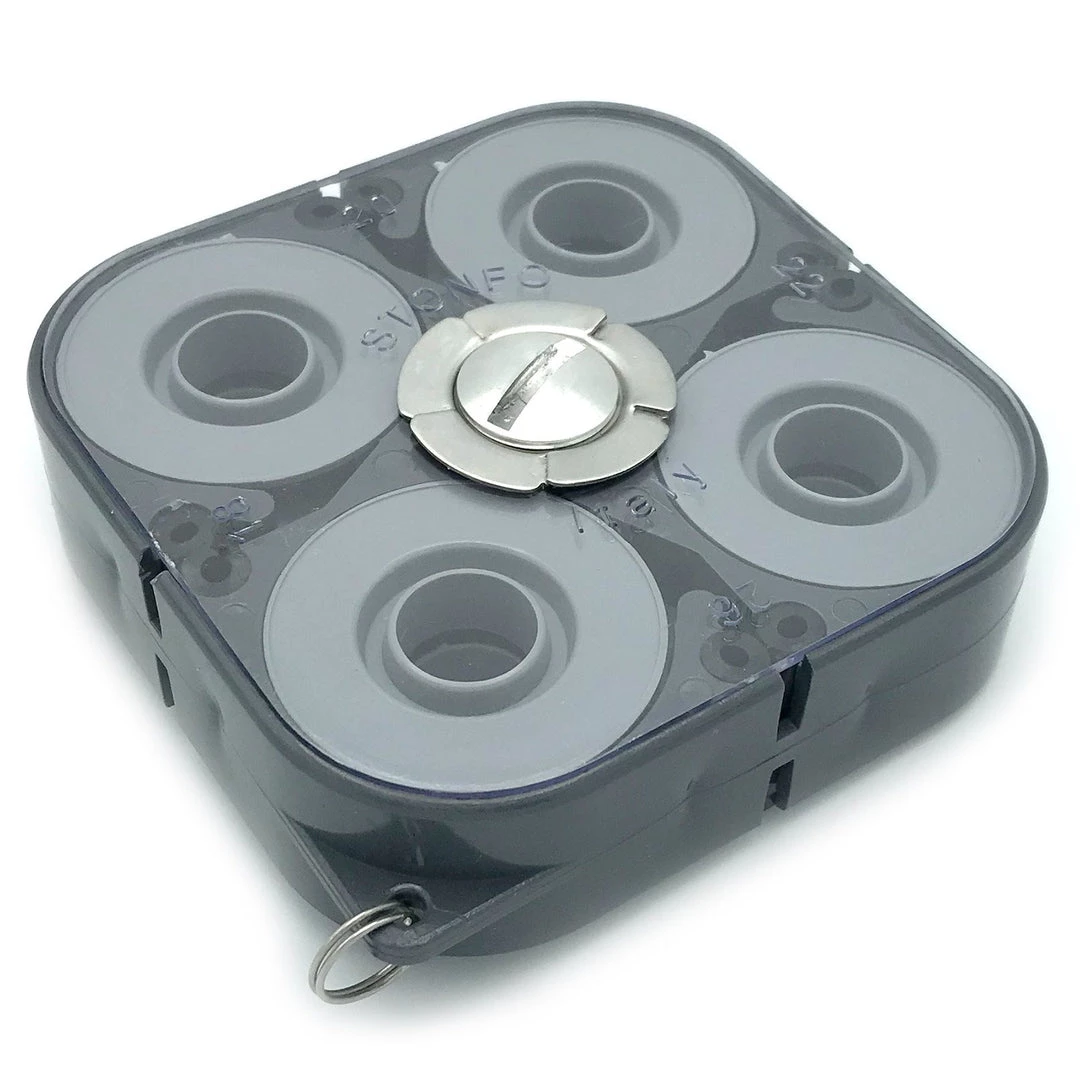 The Stonfo 8-Spool Tippet Dispenser holds and dispenses eight different tippets. Load the spools with your favorite tippet and leaders and carry them all in one compact dispenser. It includes a built in double cutter so there is no need to track down your nippers. Attach it to your vest with the included ring attachment, or slip it in a pocket. The Stonfo 8-Spool Tippet Dispenser takes up very little space and will ensure that all of your tippets are safe and handy when you need quick access to them.
