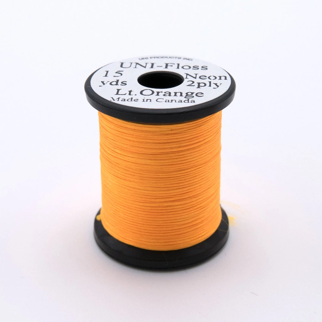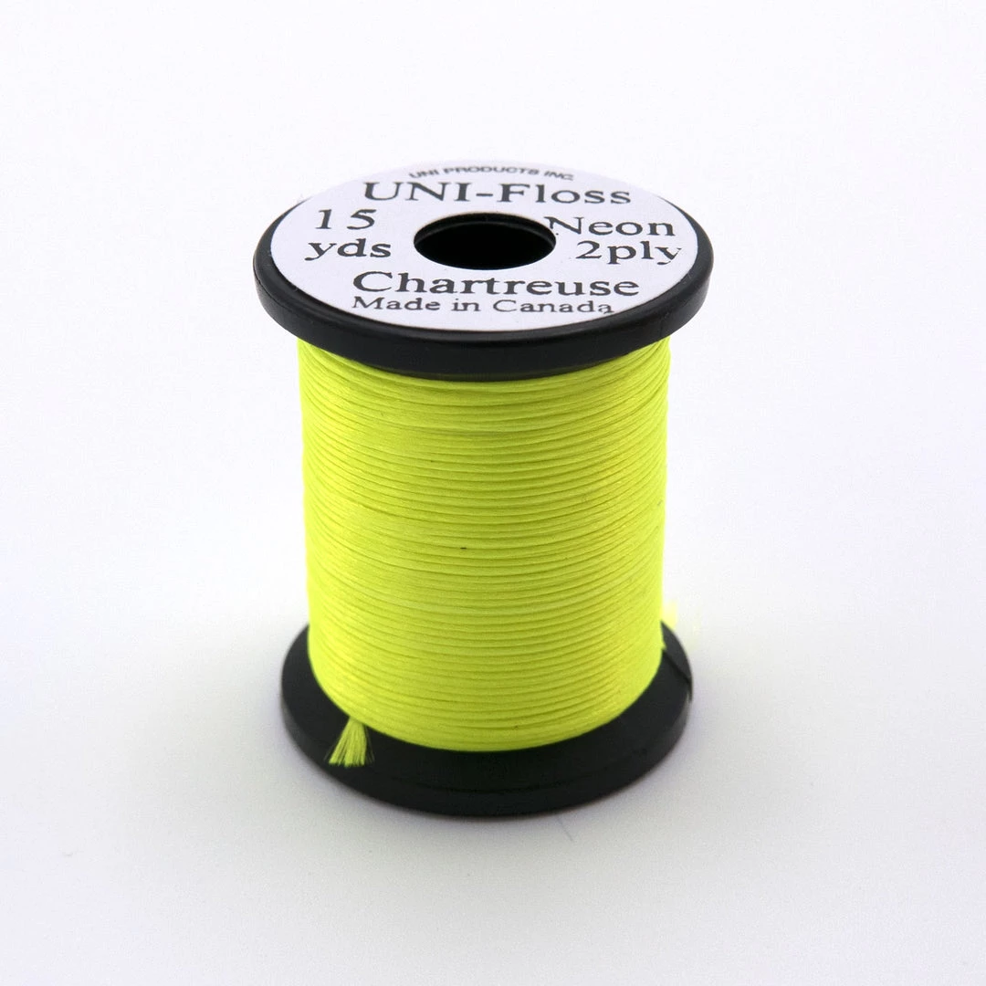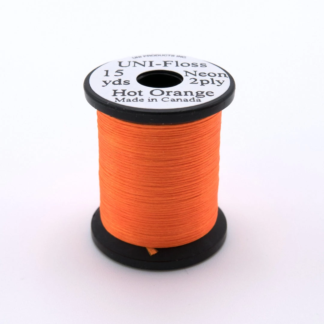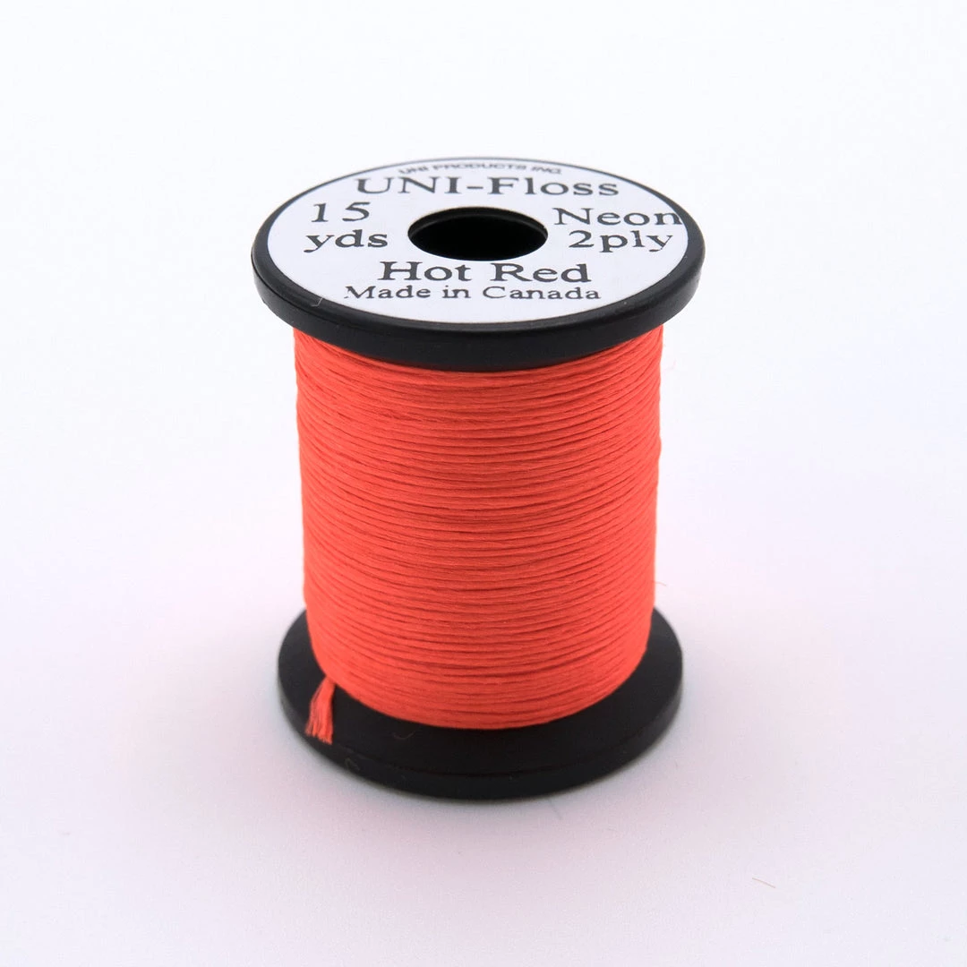 UNI-Floss Neon is a two-ply trilobal floss (similar to Antron) with a radiant sheen. It is the go-to floss for tying salmon flies, streamer bodies, soft hackles, jigs and more. Available in beautifully bright neon colors.