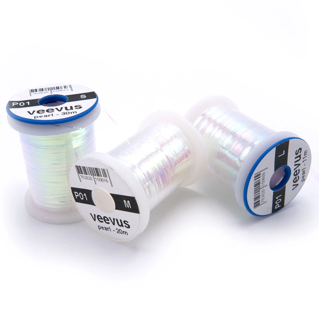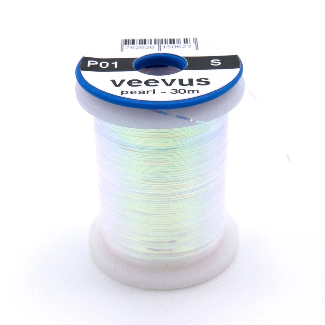 Veevus Pearl Tinsel is an incredibly strong tinsel with a lifelike pearlescent color. As with all Veevus products, this pearl tinsel features a higher breaking strength and more quantity per spool than comparable pearl tinsels on the market.